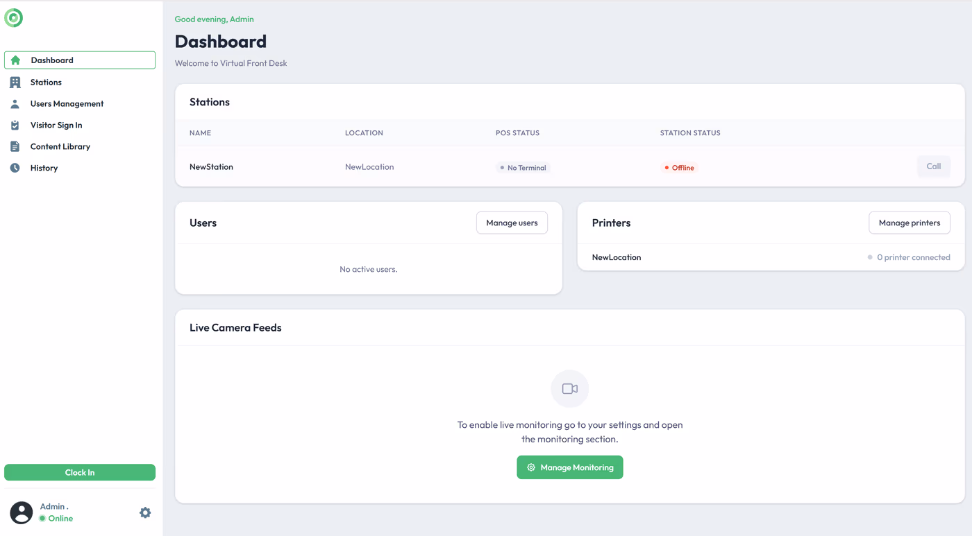 The Timesheet feature is a powerful tool designed to help administrators monitor and manage the time that employees and receptionists spend actively using the application. By leveraging clock-in and clock-out functionality, organizations can maintain accurate records of staff activity and usage patterns directly within the platform.