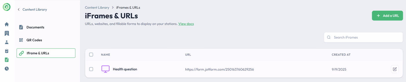 iFrames are a versatile tool that can be configured in several ways: displayed alongside your station as a split screen, triggered via a button click, incorporated into visitor sign-in forms, or even sent to the screen during a live video call. Each method gives you flexibility in how and when embedded content appears to your visitors.