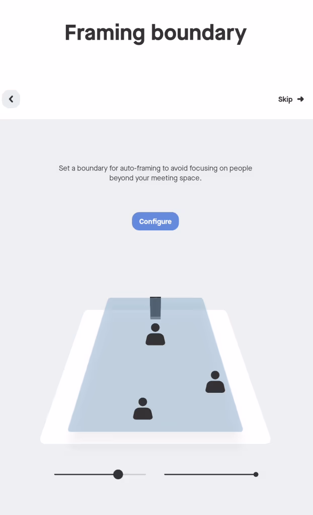 This page allows you to set a boundary for auto-framing to avoid focusing on people beyond your meeting space.