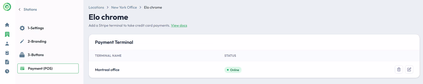 Once your Stripe account connected, go to the station's edit panel you would like to add the terminal to. Click add terminal.