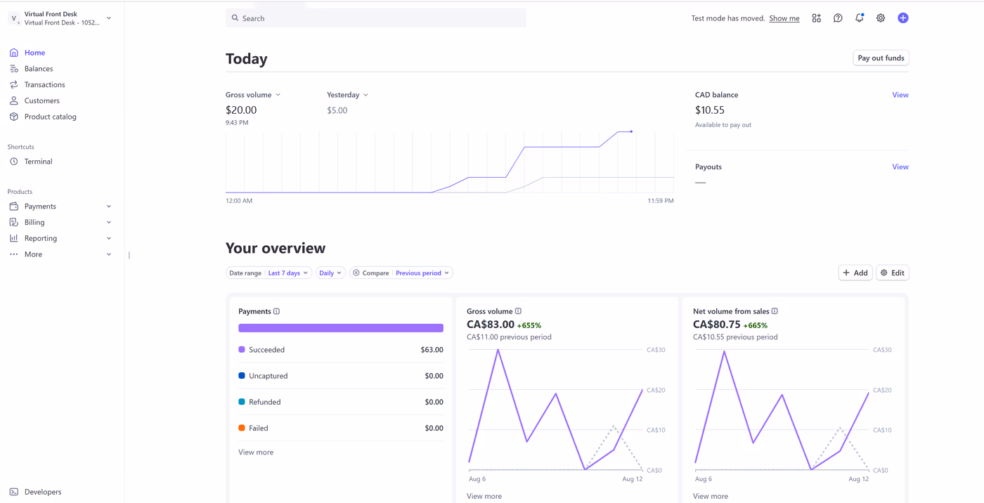 From the Settings menu of your Virtual Front Desk dashboard, connect your Stripe account.