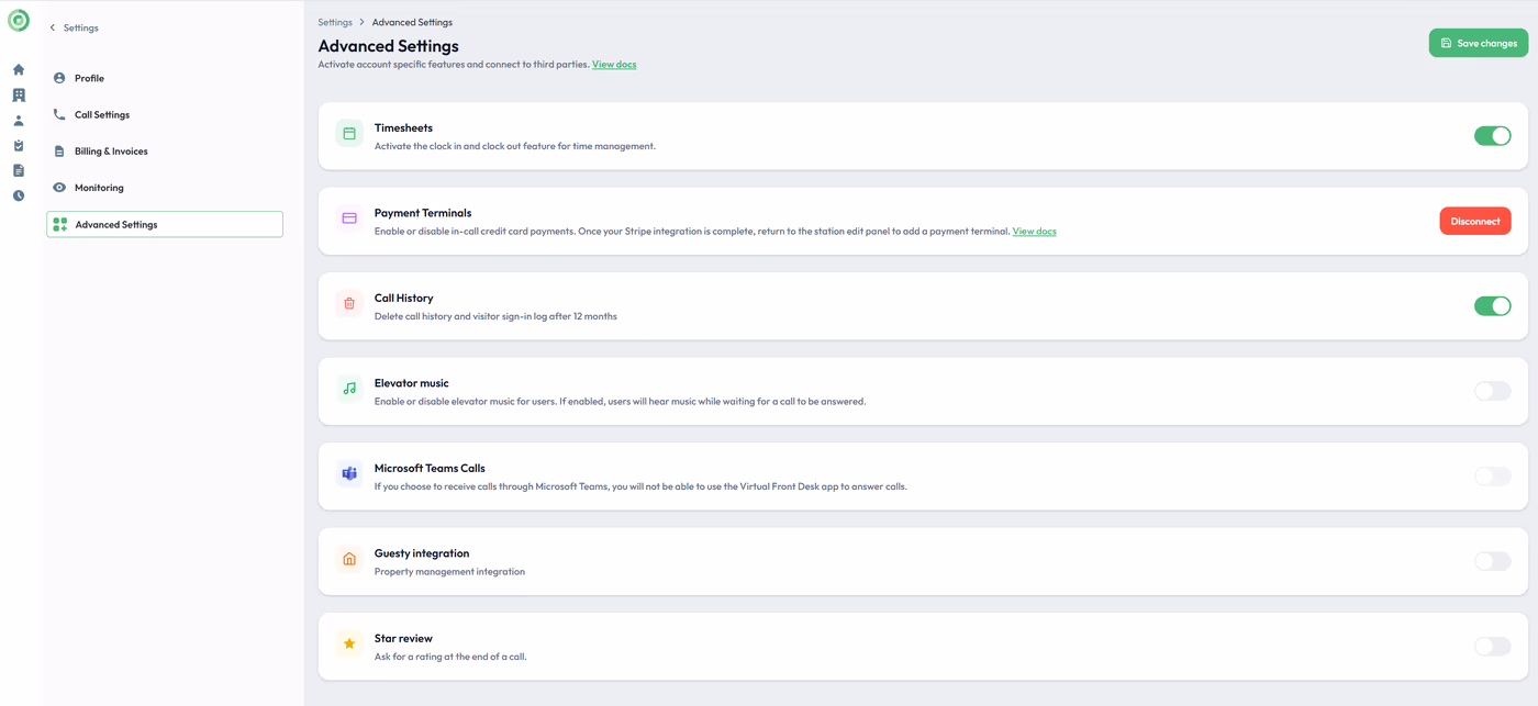 From updating your profile and notification preferences to configuring call forwarding and video backgrounds, the Settings Menu covers a wide range of options. Billing management, monitoring capabilities, and advanced integrations such as Microsoft Teams are also accessible from this area.
